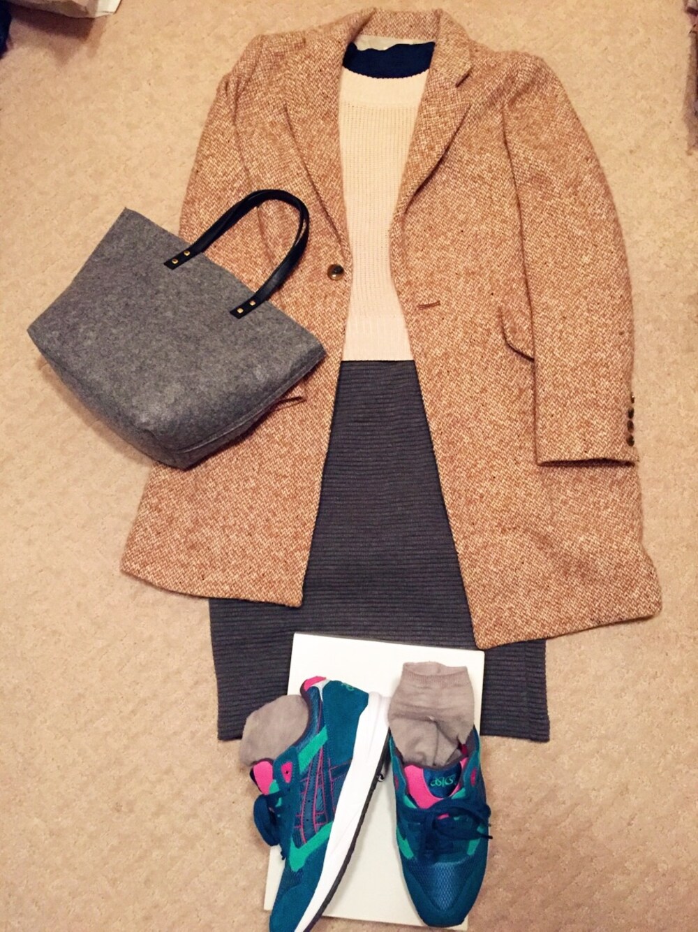 今まで我慢してきたけどついに寒さに耐えかねてコートを引っ張り出してきたの巻 おろしたスニーカーの色がお気に入り(˘ω˘)