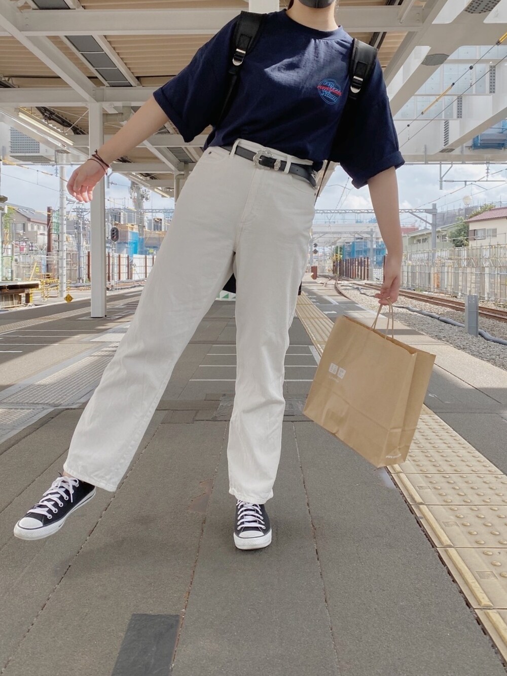 めっちゃかわいいwho's who galleryのTシャツ!💙 ダボってしてて気軽に着れるし、パンツにインしても膨らまなくて最高🌟 このBershkaのベルトも可愛いけど、ベルトが大きくて穴が私には合いませんでした、、、 だから少しだけたるんでる😖 みなさんも気をつけて下さい〜!🍒