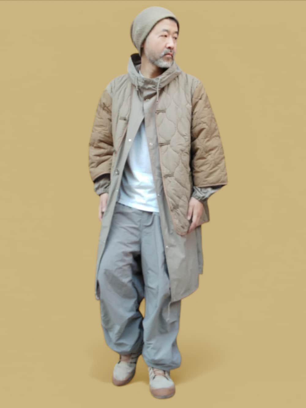 WEEKEND(ER)のM65 COLOR SCHEME DAN-TENは、半纏をモチーフにしたワンマイルウェアのDAN-TENを、チャイナボタンを取り付けてリニューアルしたモデルです。 キルティングの模様は、M-65フィッシュテールパーカーのライナーをイメージして模しており、パッカブル仕様として収納すると、枕にもなる便利なアイテムです。 今回はインナーにモッズコートを入れ、レイヤードでベスト風に見せながら、ナチュラルカラーで全体を軽めに仕上げました。 ーーーーーーーーーーーーーーーー ▷webshop : addict(s) プロフィールにリンクしてあるウェブショップでは、様々なアパレルアイテム販売の他、福岡市内でのパーソナルスタイリストの受付もしているので、興味がある方は是非覗いて見てください。 ▷実店舗:addict(s) 福岡の中心地天神近くの今泉地区に、2023年3月2日オープン。SNS登録で各種特典があります。 詳細はリンクを参照ください。着用品の取り扱いもしています。