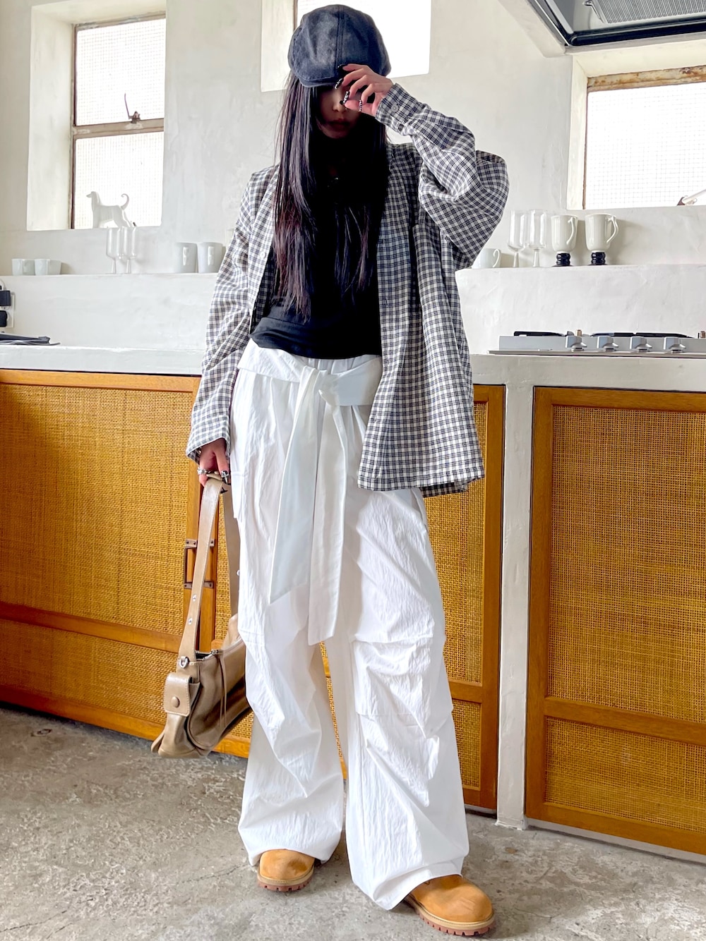 additionstore(Ada.)のカーゴパンツ「Waist wrap wide cargo pants / シャツ腰巻き風 ワイドカーゴパンツ / ツナギを着ている様にコーデが出来るギミックが◎」を使ったコーディネート