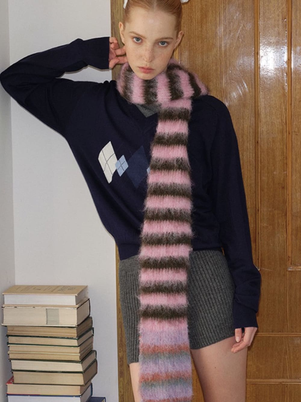 additionstore(Ada.)のマフラー「【再入荷】\もふもふ/ ボーダー柄 モヘア マフラー / Striped mohair muffler / asmm」を使ったコーディネート