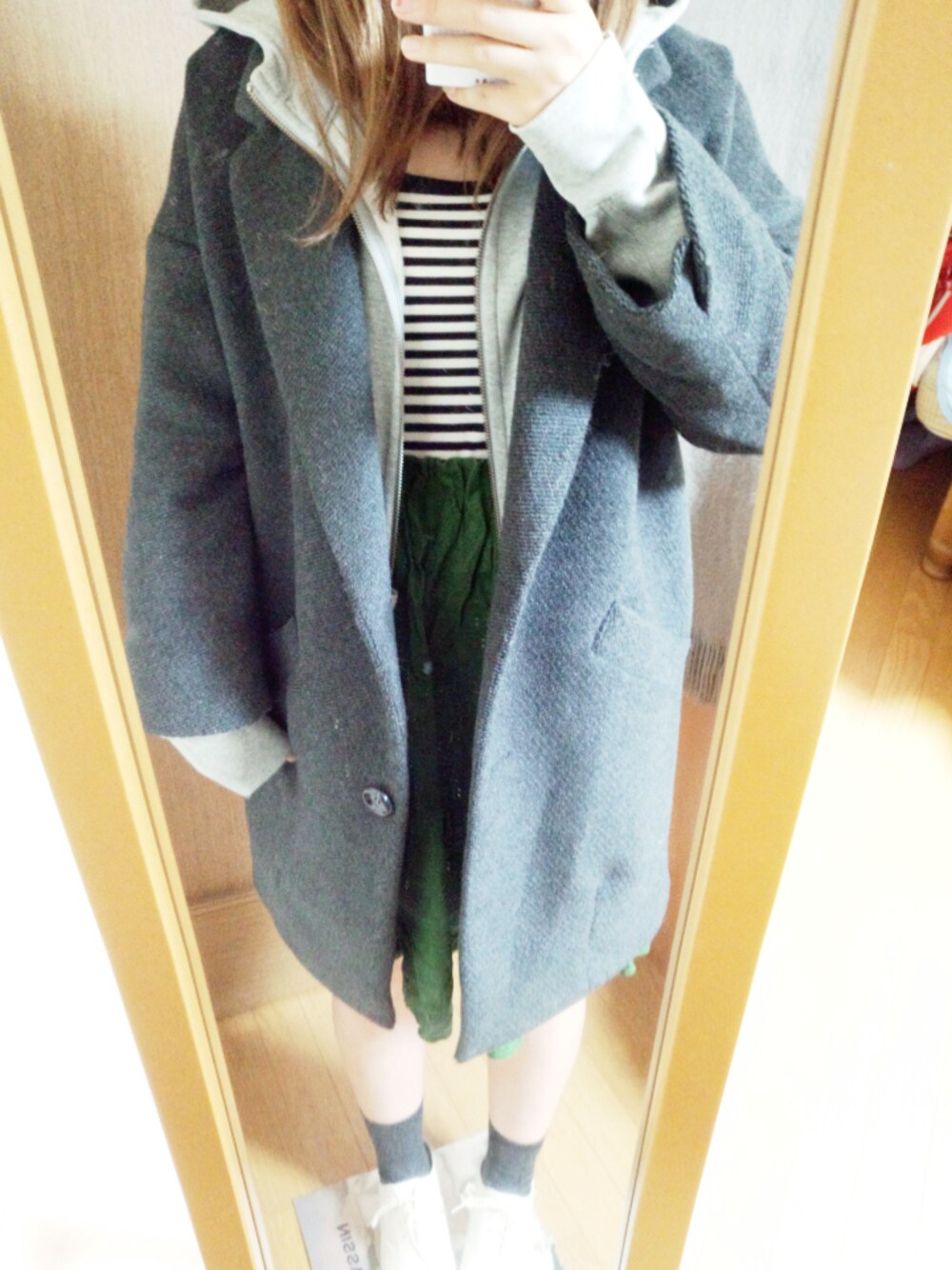 チェスターコート/RayCassin スカート/RayCassin ボーダーロンT/ユニクロ パーカー/ユニクロ(メンズ)