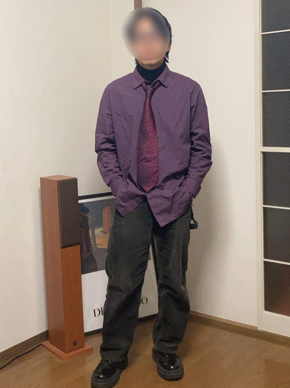ロロのドレスシューズ「GU×undercover チャンキーソールプレーントゥシューズ」を使ったコーディネート