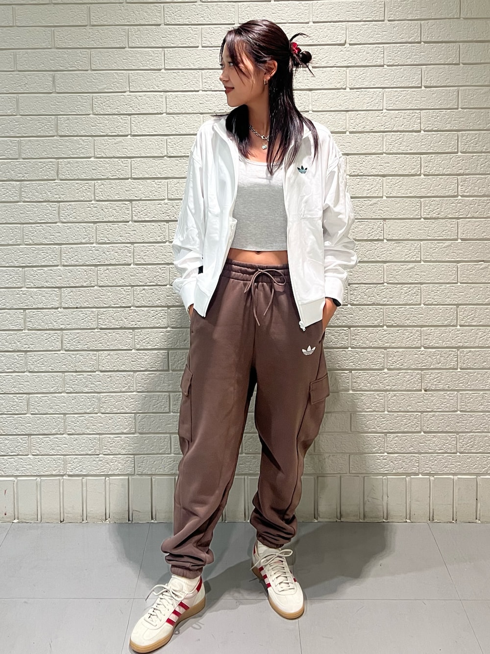 マイナ(アディダス ブランドセンター RAYARD MIYASHITA PARK)のパンツ「バスケットボール カーゴスウェットパンツ(ジェンダーニュートラル)」を使ったコーディネート