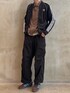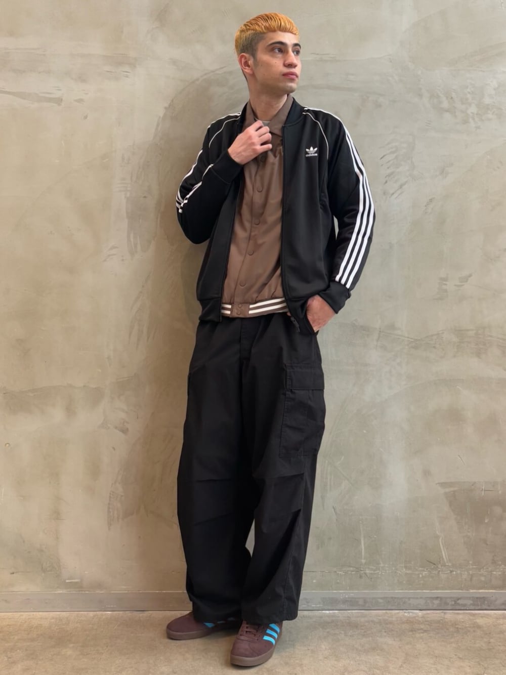 【TOPS】 サイズ感:スリムフィット 特徴・素材感:ポリエステル70%/綿30% 。スリムなサイズ感で細身の作りになっていますが、肩周りはラグランの仕様になっているためゆったりと着用できる。 【INNER】 サイズ感:ルーズフィット 特徴・素材感:ポリエステル70%/綿30%。ルーズフィットなので大きめで着用できる。少しハイネックなジャージでバックプリントもついている。上からアウターも羽織れる。