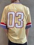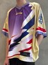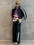 【TOPS】 サイズ感:オーバーサイズフィット 特徴・素材感:着丈はかなり短くなっており外でや身幅が広いためオーバーで着用できるレザージャケット 【TEE】 サイズ感:ルーズフィット 特徴・素材感:ポリエステル100%。大胆なスタイリングが楽しみてるアメフト風ジャージでカジュアルなデザインにメッシュ素材を使っているので通気性もよくサイズもオーバーで着用できる。 【PANTS】 サイズ感:ルーズフィット 特徴・素材感:幅、長さもありシルエットも綺麗に着用できるレザーパンツ