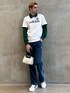 【TEE】 サイズ感:スリムフィット 特徴・素材感:クラシックなデザインで細身の作りになっているリンガーTシャツ。古着っぽく着用できる。 【PANTS】 サイズ感:レギュラーフィット 特徴・素材感:綿100%。90年代ファッションをイメージしたデザインでコットン100%を使った柔らかいデニムになっている。