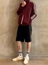 【TOPS】 サイズ感:スリムフィット 特徴・素材感:ポリエステル98%/エラスタン2%。着丈が長く細身の作りになっているがラフに着用できるプレミアムシリーズ。 【PANTS】 サイズ感:ルーズフィット 特徴・素材感:綿100%。人気のデニムシリーズで膝下までの長さがあり生地感が柔らかくサイズも大きめ。