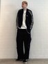 【TOPS】 サイズ感:ルーズフィット 特徴・素材感:ニット生地のトラックジャケット。薄い生地の着丈が短く身幅がゆったりしてるので肩周りもゆったりしているためオーバーサイズで着用できる。