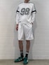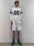 【TOPS】 サイズ感:ルーズフィット 特徴・素材感:メッシュ素材のアメフトジャージで首元も広く開いておりメッシュ素材になっているので通気性も良い。 【PANTS】 サイズ感:ルーズフィット 特徴・素材感:メッシュ素材のバスケットボールショーツで膝丈までの長さ。サイズを上げればオーバーサイズにも着用できる。