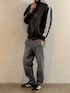 【TOPS】 サイズ感:オーバーサイズフィット 特徴・素材感:ポリウレタン100% クラシックなadidasのロゴが入ったレザートラックトップ。サイズ感もかなり大きくオーバーサイズで着用できる。 【PANTS】 サイズ感:ルーズフィット 特徴・素材感:綿100% レトロな雰囲気があるデニムパンツ。幅も少し太めで長さが十分にあるため足元周りもゆったり着用できる。