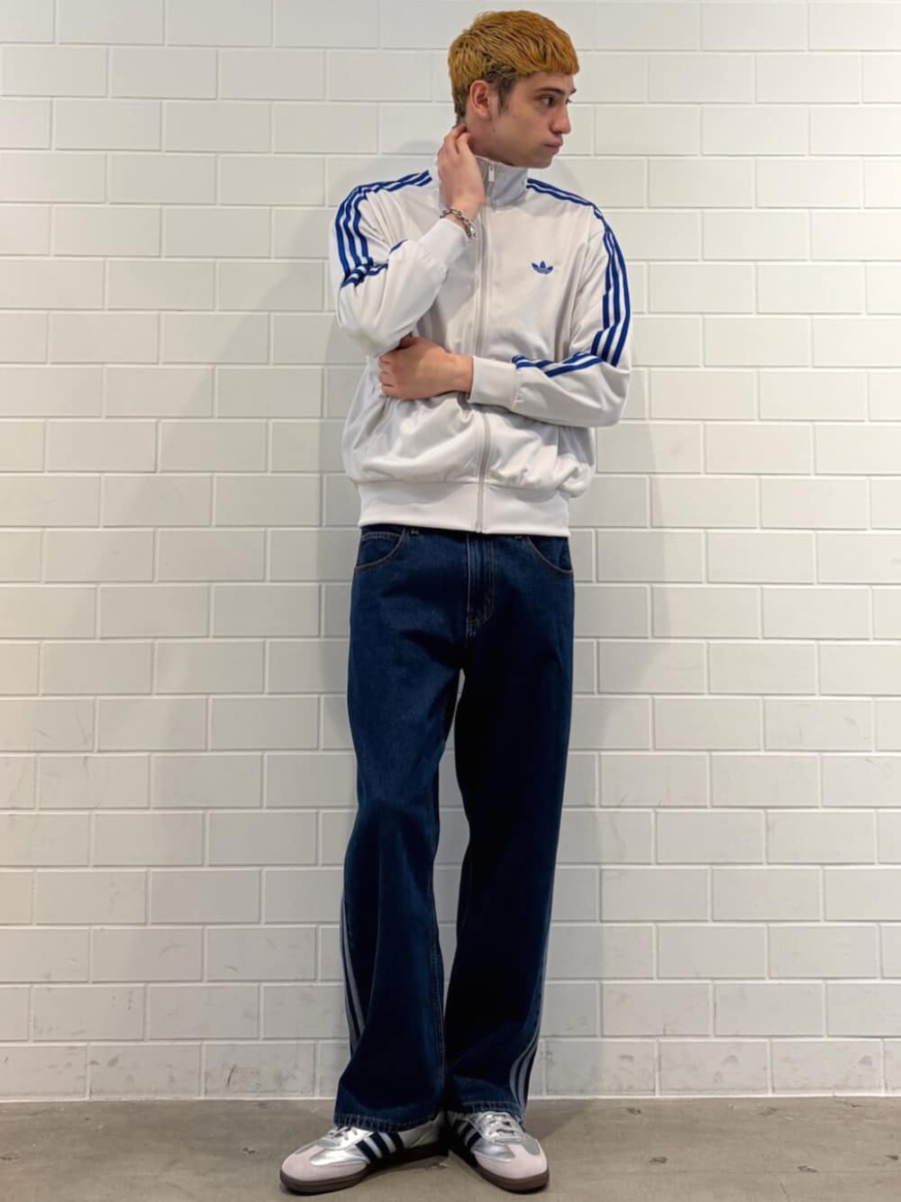【TOPS】 サイズ感:ルーズフィット 特徴・素材感:ポリエステル100% ゆったりとしたフィット感のトラックトップでFREAK’S STOREとのコラボアイテムでサイズ感も大きく春先でも着用しやすくなっている。 【PANTS】 サイズ感:レギュラーフィット 特徴・素材感:綿100% アディカラーのデニムパンツでストレートな形になっており足首周りもゆったりと着用できる。