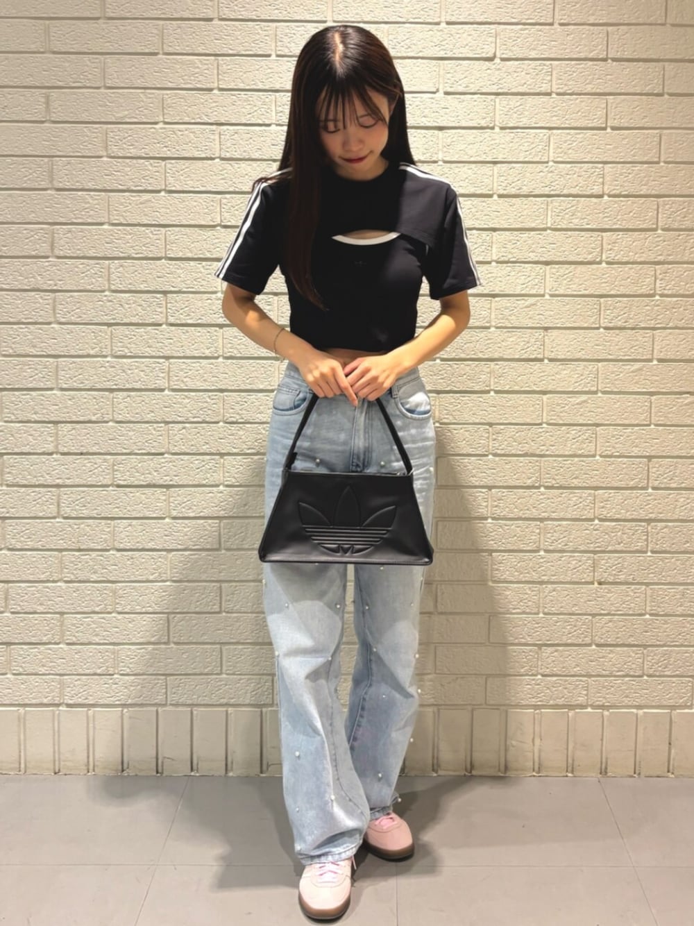 Akari(アディダス オリジナルスショップ 横浜ビブレ)のTシャツ/カットソー「カットアウト カリ半袖Tシャツ / アディダスオリジナルス adidas Originals」を使ったコーディネート