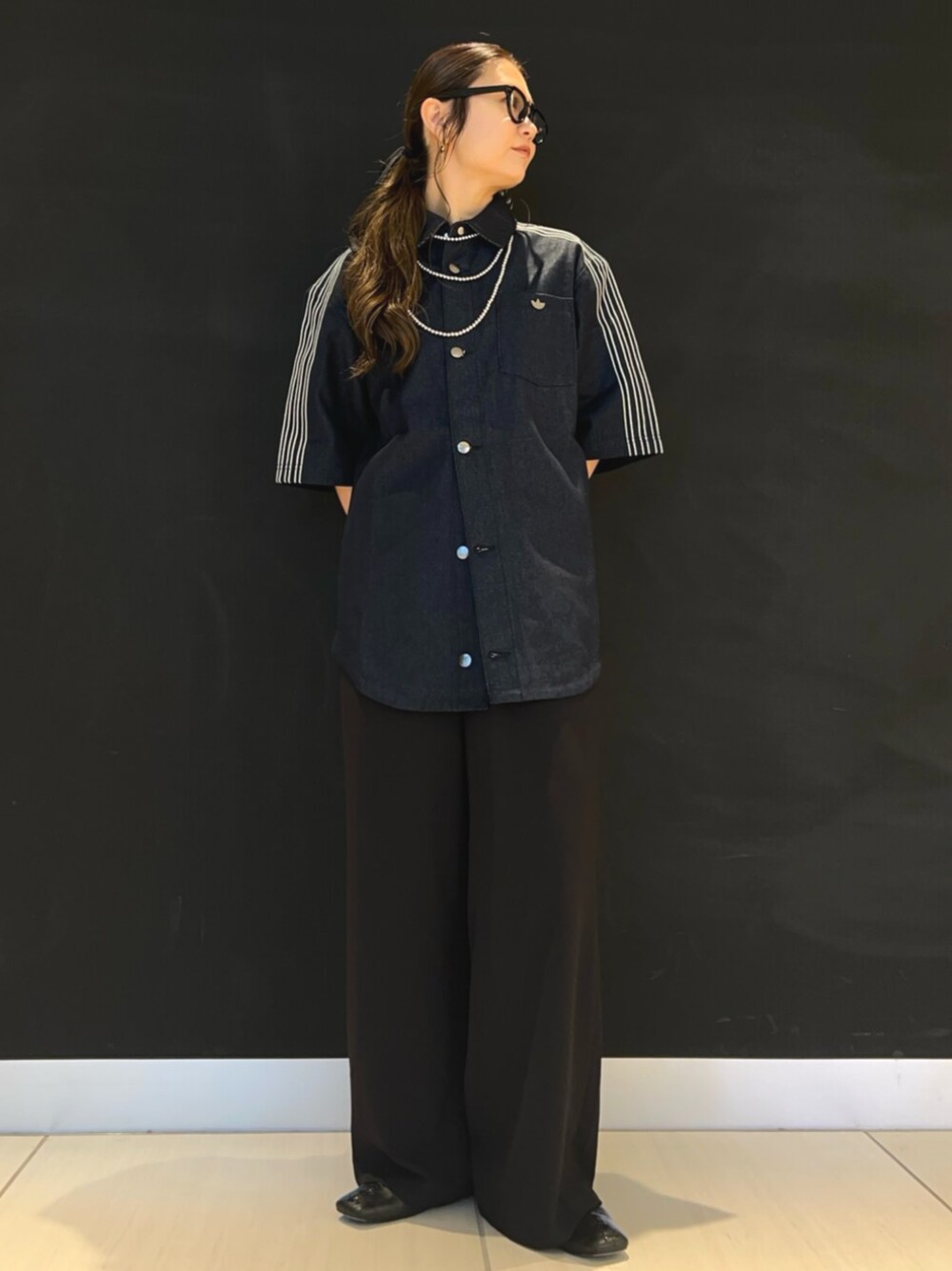 NC(アディダス オリジナルスショップ GINZA SIX)のシャツ/ブラウス「デニム半袖シャツ / アディダスオリジナルス adidas Originals」を使ったコーディネート