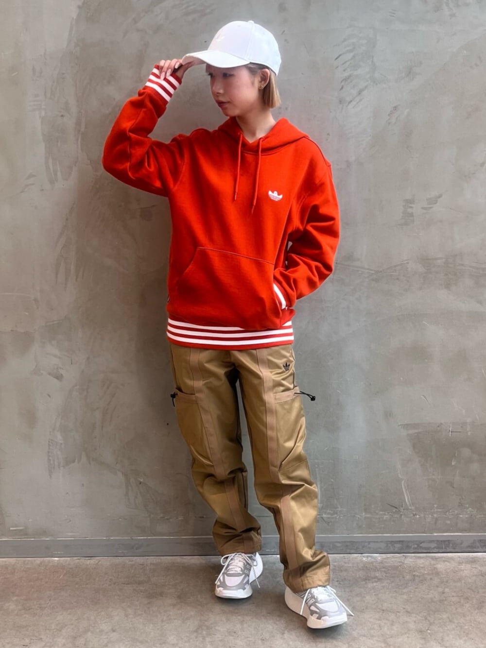 RH(アディダス オリジナルスショップ 福岡)のカーゴパンツ「プレミアム バケットカーゴパンツ / アディダスオリジナルス adidas Originals」を使ったコーディネート