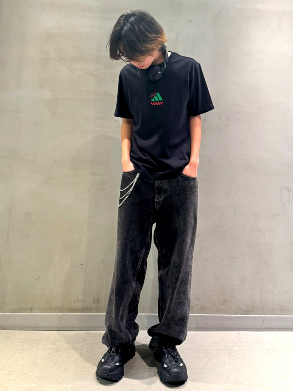 HR(アディダス ブランドコアストア 名古屋)のTシャツ/カットソー「ラウンジ ピザグラフィック 半袖Tシャツ / アディダス adidas」を使ったコーディネート