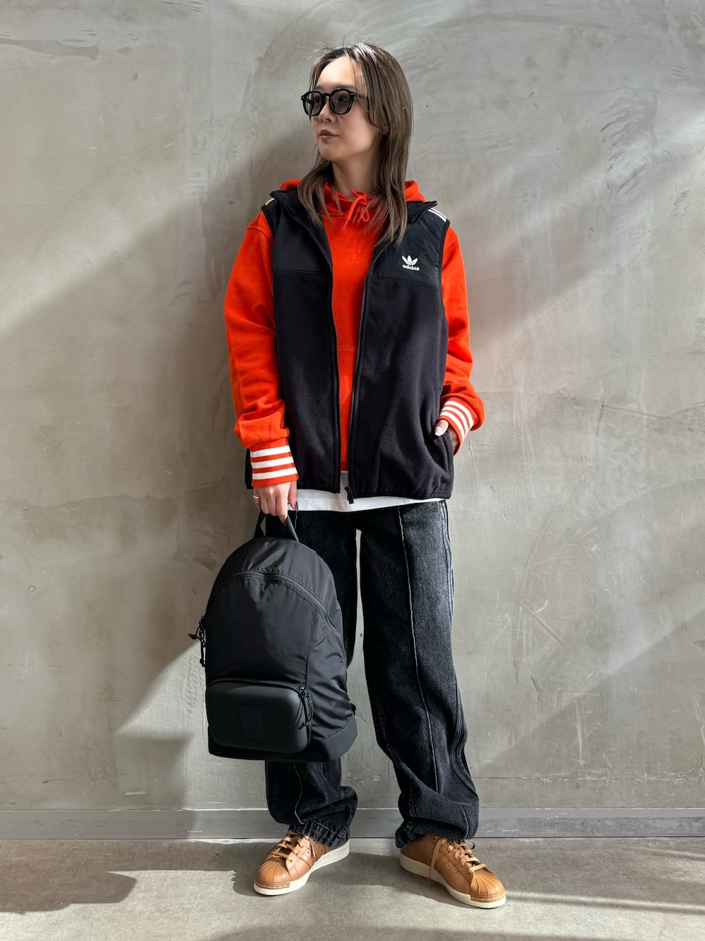 RT(アディダス オリジナルスショップ 福岡)のベスト「アディカラー スリーストライプス マイクロフリースベスト/ アディダスオリジナルス adidas Originals」を使ったコーディネート