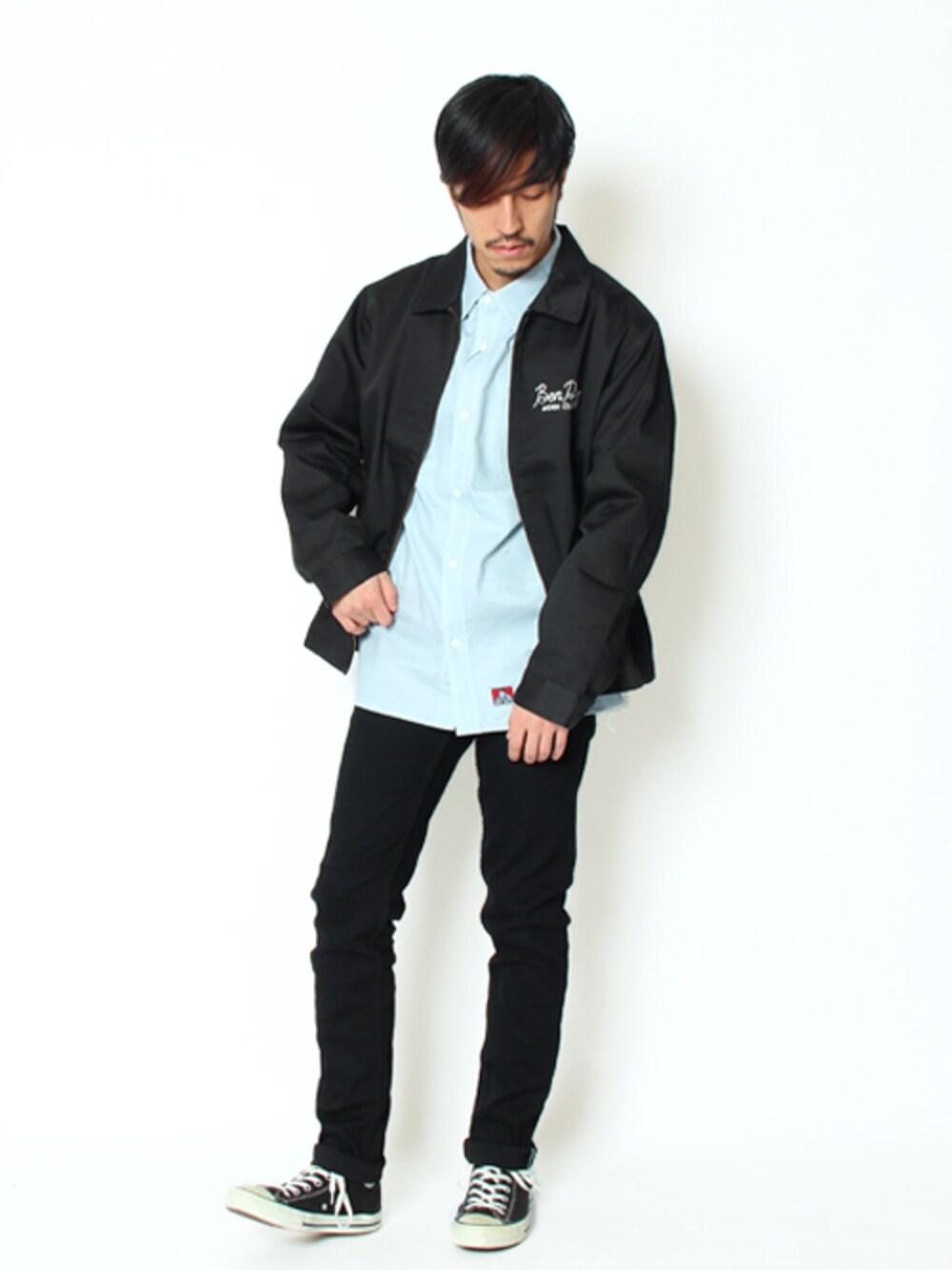 こんばんは BEN DAVIS の2019春の新作 TCツイル ワークジャケットで コーディネートしてみました! 胸のチェーン刺繍が、トレンドの ワークテイストを演出してくれてます! シンプルなデザインだから シャツ、Tシャツ、パーカーなんにでも 合う!! インナーを変えれば長い期間着られる 万能ワークジャケットです◎