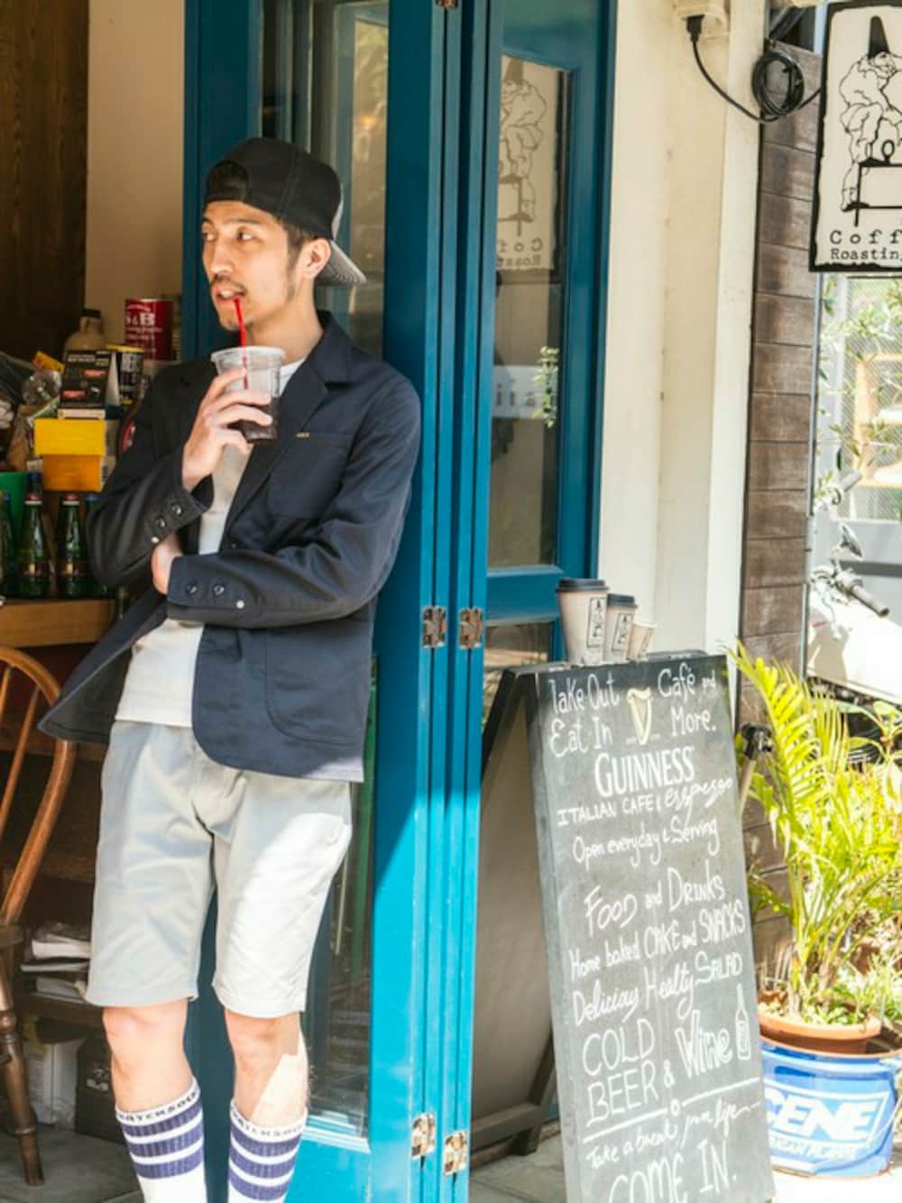 天気がいい日のカフェまでお出かけスタイル! 無地アイテムで揃えました。 カラーで遊ぶのを忘れずに。 3ラインのソックスはスケータースタイルには欠かせない!