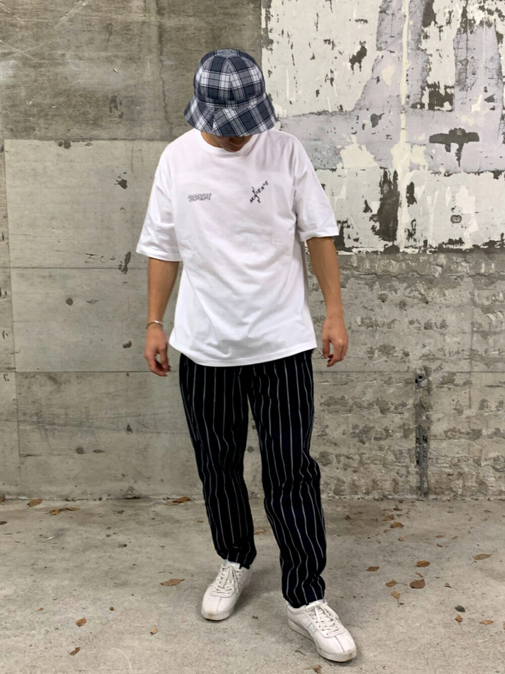 おはようございます☀ オリジナルtシャツ×バケットハット×シェフパンツのストリートコーデ Instagram👉 armadillo_nunsense