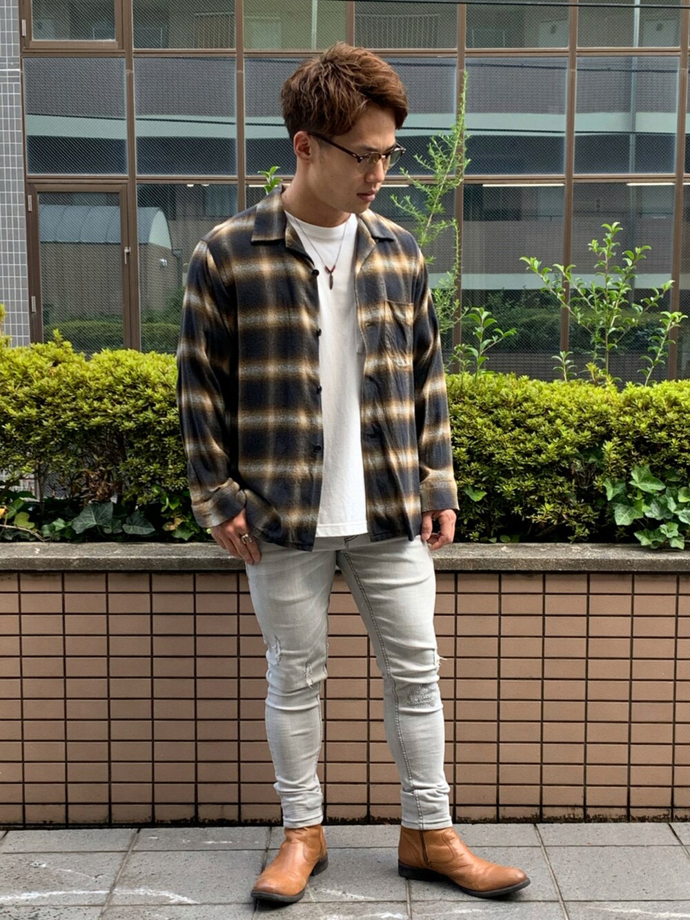 おはようございます☀ シャツ×デニム×ブーツのコーデ penny’sのシャツとカラーデニム、ブーツの色味が全体のコーデにマッチしています👏 Instagram👉 armadillo_nunsense