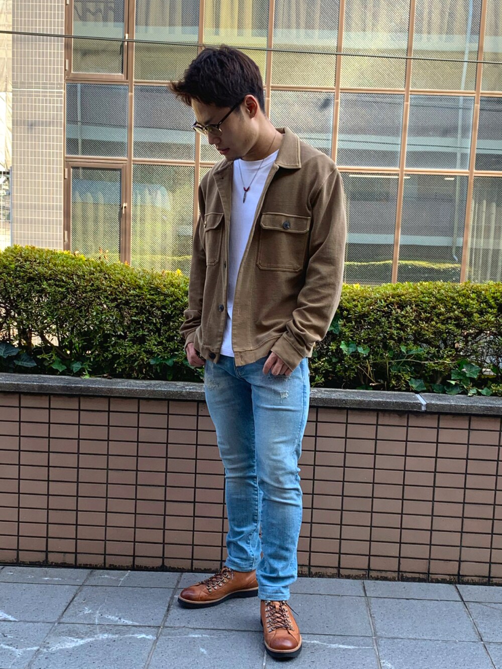 こんにちは🙌 ライトアウター×デニム×ブーツのコーデ! ベージュのアウターを使い秋っぽさを演出しています!デニムとブーツで全体のコーデを男らしくまとめています!