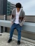 カーディガン×デニム×ブーツのコーデ! ペンドルトンのカーディガンとデニムの相性が抜群に良く、ワイドなデニムが良いアクセントになっております!