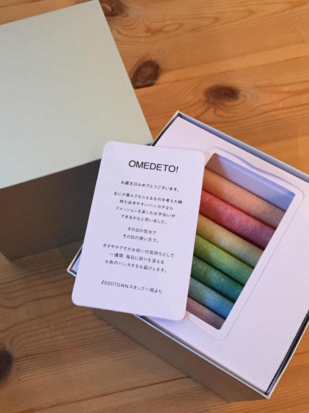 zozotownさんから誕生日プレゼントいただきました。 ありがとうございます! こんな粋な事してるなんて知らなかった。 ハンカチやお弁当包んだり色々使わせていただきます。