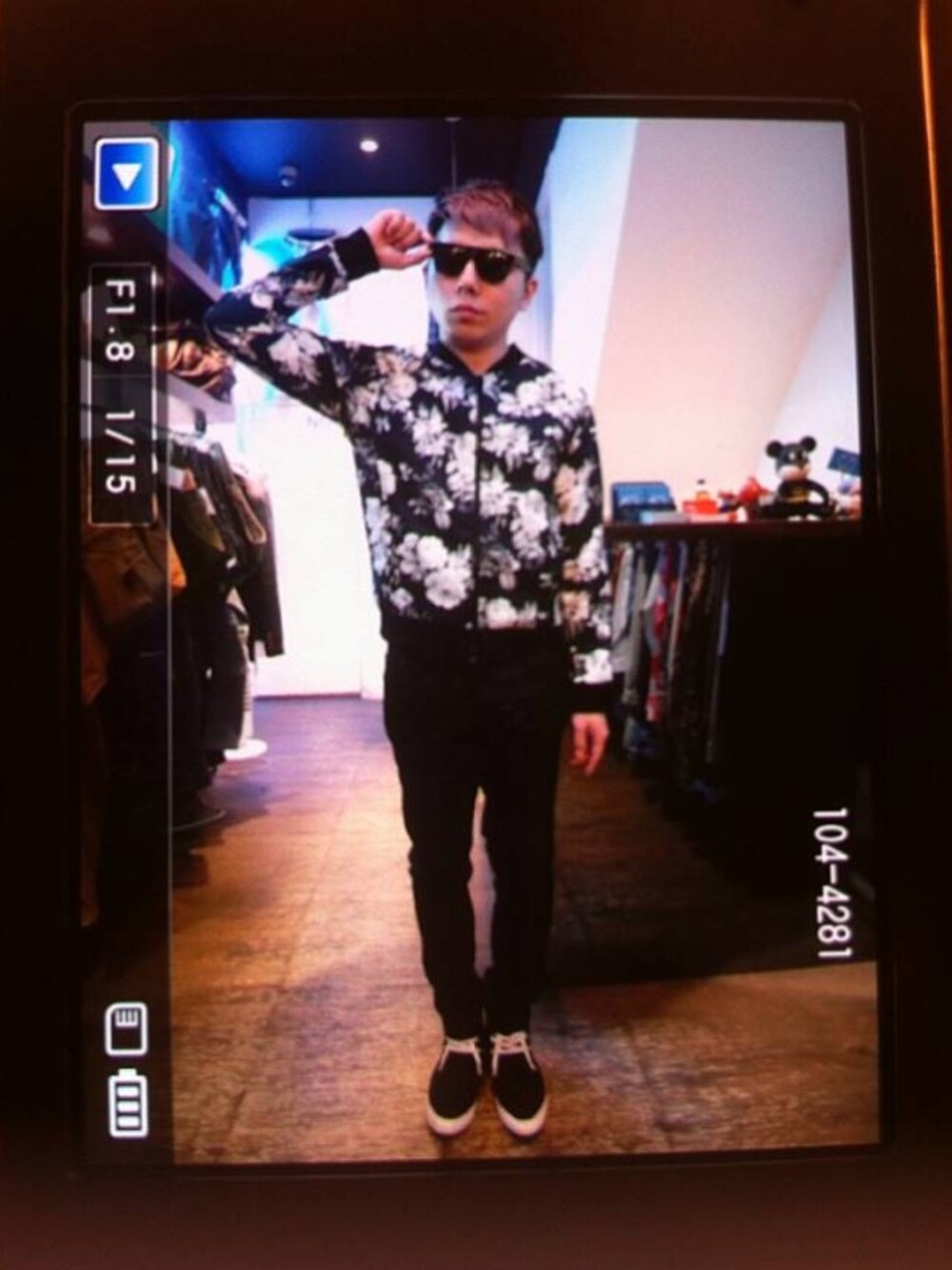 黑白花外套/黑色窄褲/黑色豹紋鞋/黑色墨鏡 black style