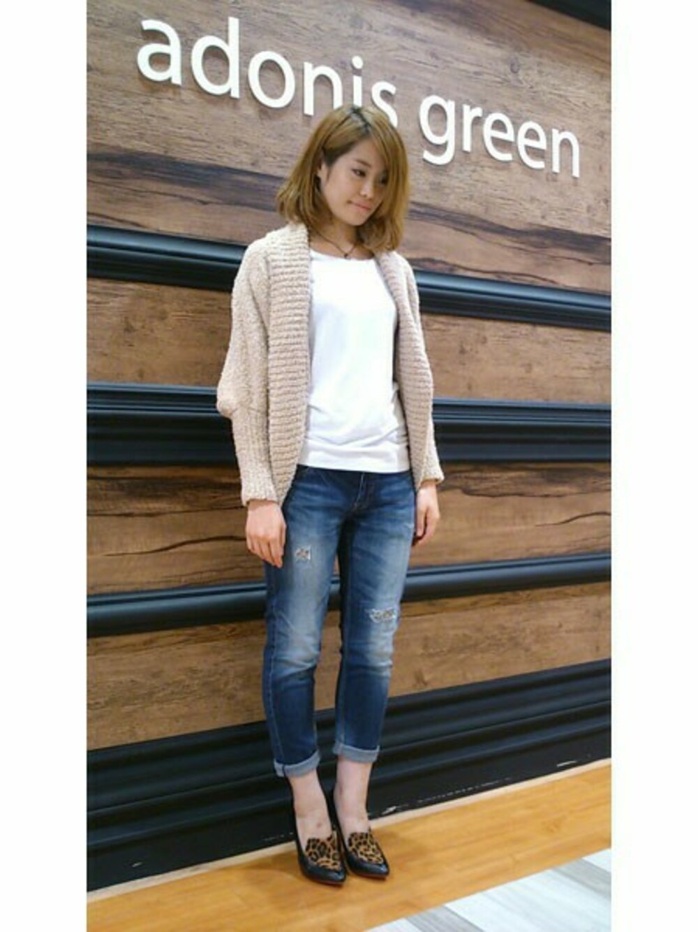 山崎のカーディガン/ボレロ「モコモコヤーンモモンガカーデガン」を使ったコーディネート