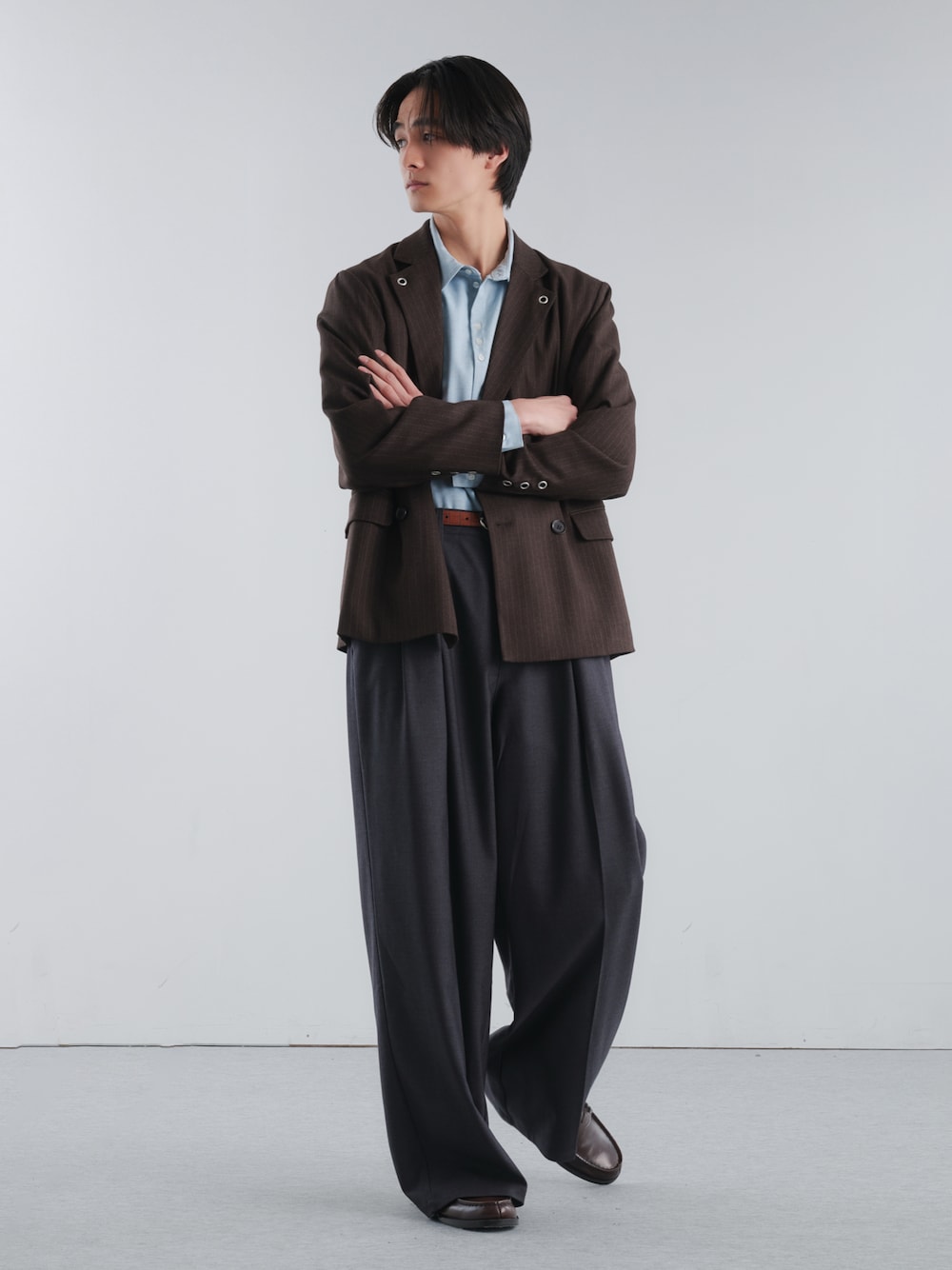 adoonplainのスラックス「High Density Gabardine 2-Tuck Wide Slacks / 高密度ギャバジン2タックワイドスラックス」を使ったコーディネート