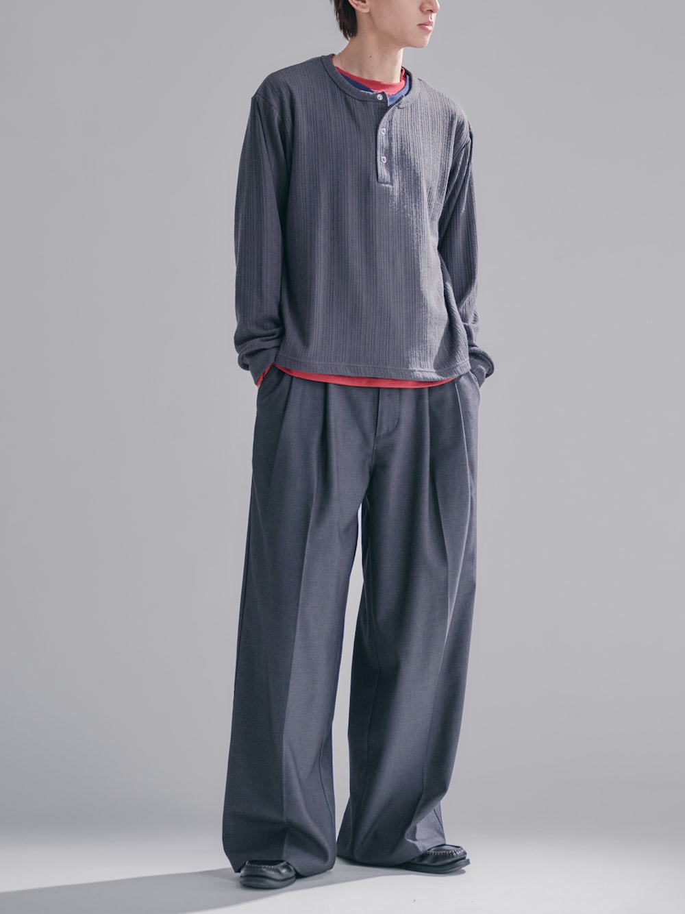 adoonplainのスラックス「High Density Gabardine 2-Tuck Wide Slacks / 高密度ギャバジン2タックワイドスラックス」を使ったコーディネート