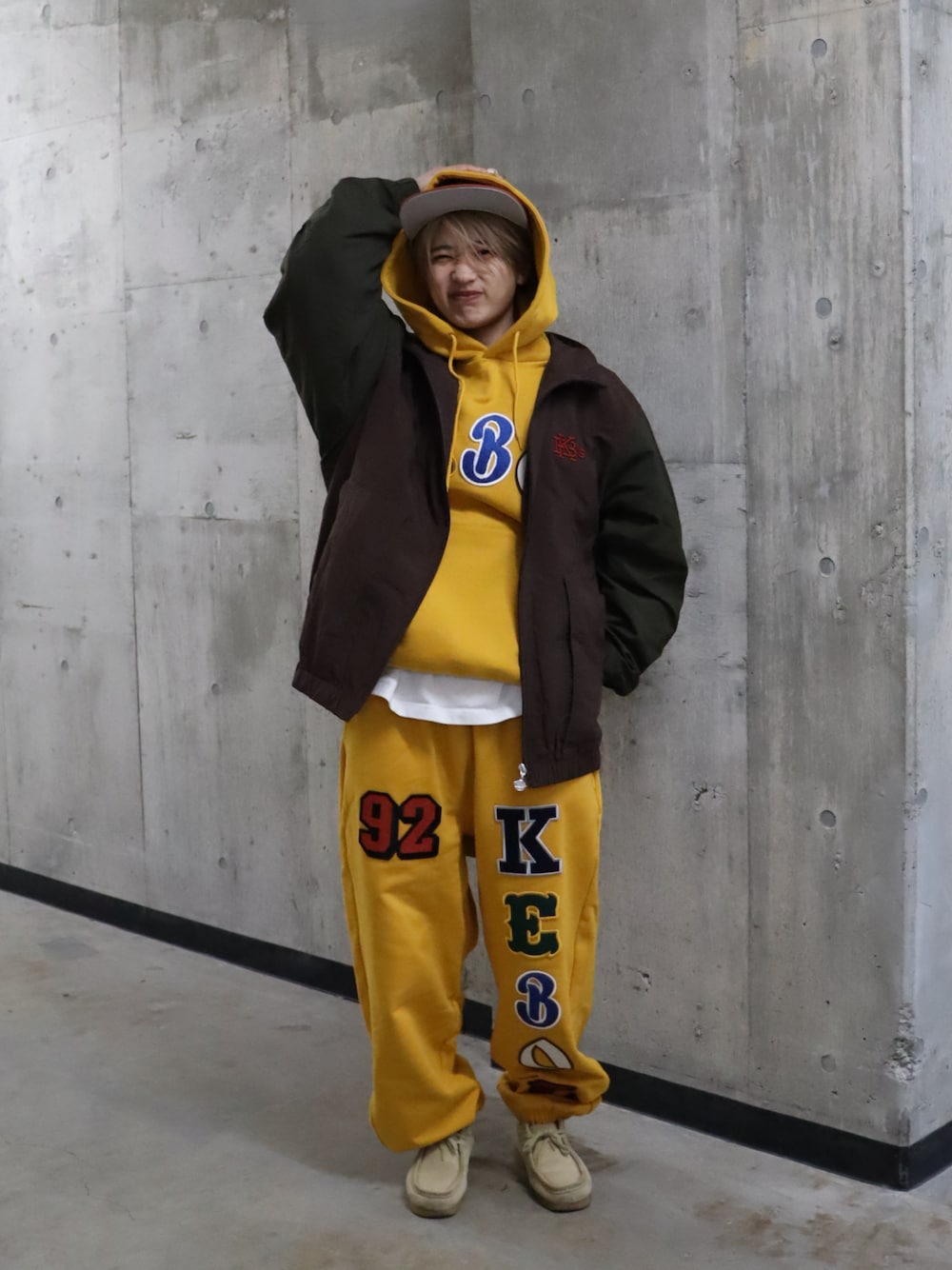 インパクト大のセットアップコーデでロゴやナンバーリングなど遊び心あるアイテムになっています!