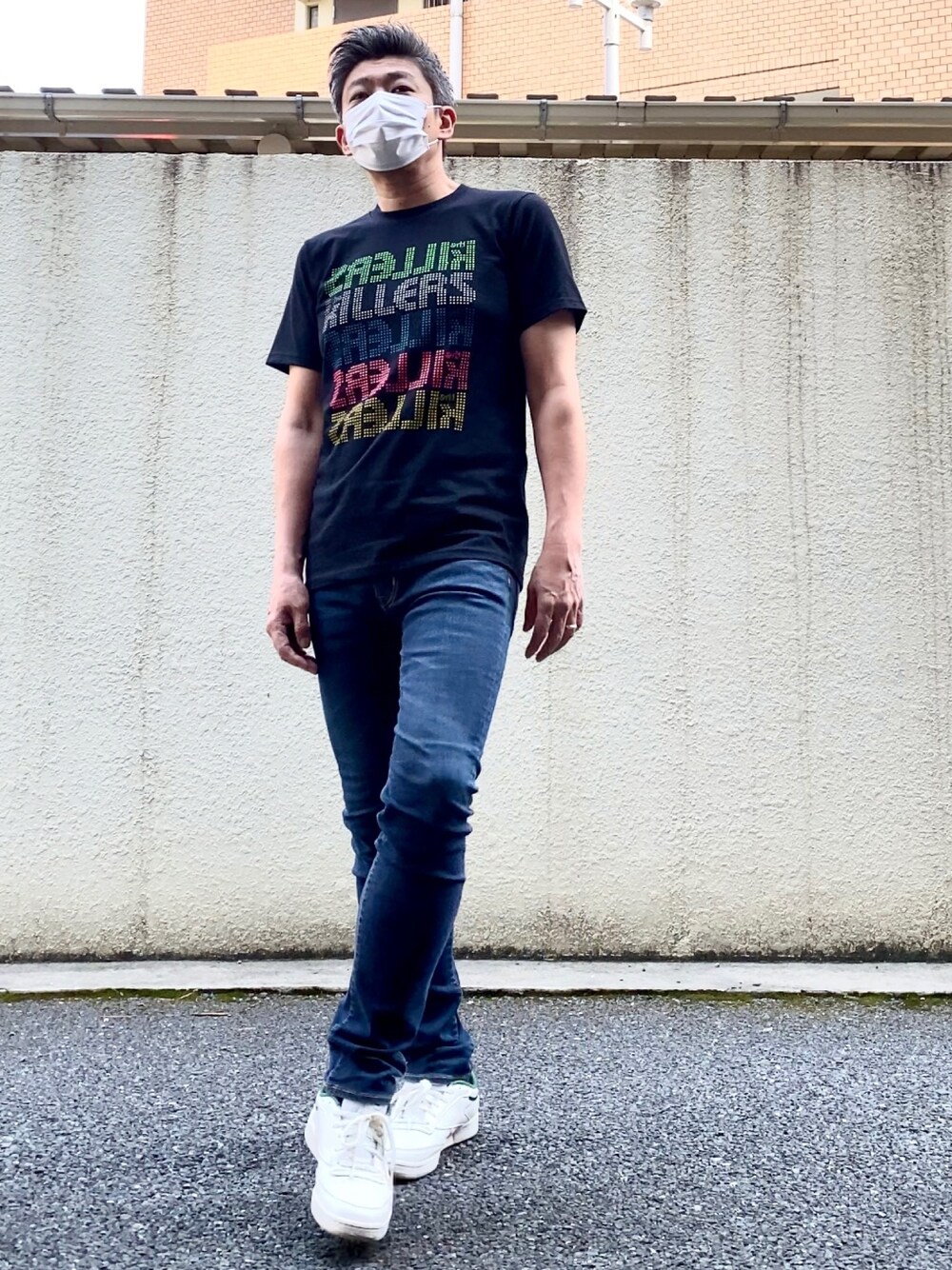 こんにちは😃みなさま いつも見ていただいてありがとうございます。 休日コーデです♪ シャツ脱いだだけの連チャン投稿ですが よかったらお付き合いください😓 シャツを脱いでシンプルTシャツコーデ♬ "ザ・キラーズ"のロゴバンドTシャツです🥳 色とデザインで買ってしまった🤣けど いかがでしょうか? こういうバンドTシャツとかロックTシャツは 見ると👀買ってしまうぅぅ😓 よかったら、通勤コーデも覗いてみてください😓 みなさま引き続き これからもよろしくお願いします。🌈