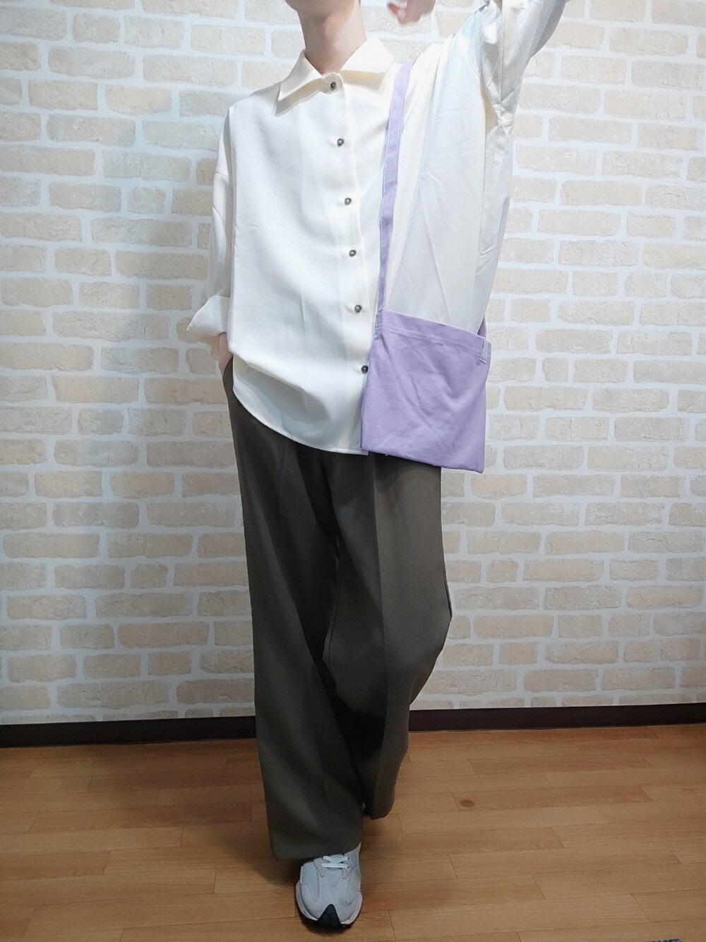 こんにちは、一般通過Casper Johnファンです。 ゆったりシャツと足長フレアスラックスのカジュアルコーデ。 パンツはカーキですが、 主張の激しくないくすんだ色なので使いやすさ◎ 程よくコーデを引き締めてくれます。 そして、今回の主役は何と言っても パステルカラーのショルダーバッグ! 今流行りの『かわちぃ』ってやつですね。 デカすぎないサイズ感で、差し色としても重宝します。 ラフだけど、どこか遊び心と色気を感じる(?) 春の公園デートにいかがでしょうか。