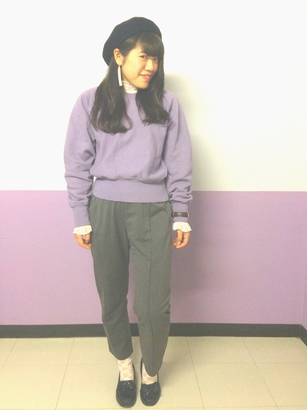 スウェットをきれいめに着る どや顔、学校にて🏫