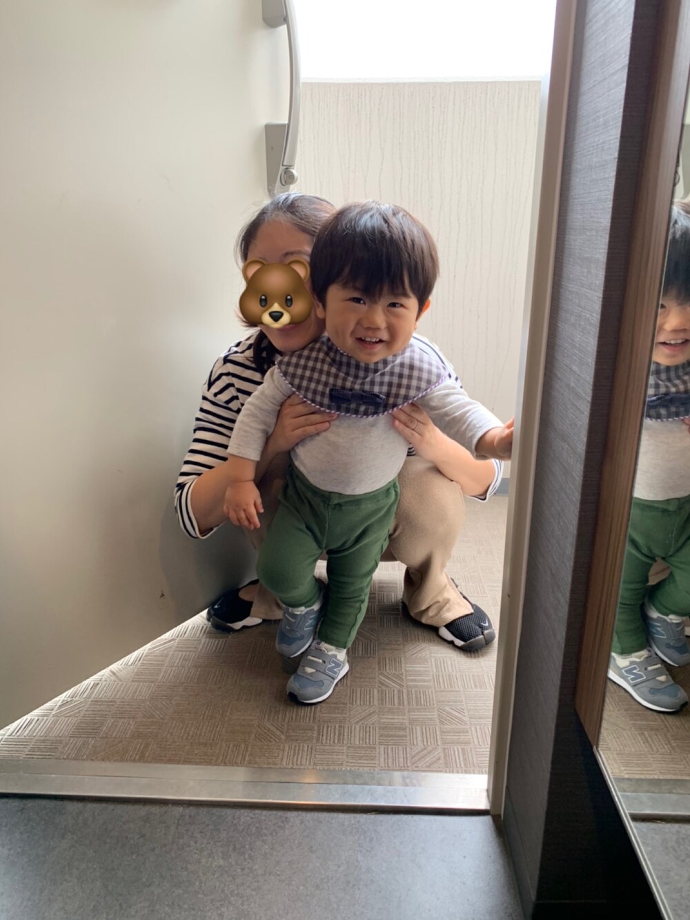 朝のお散歩コーデ🐾 なぜかこのパンツ大好きで いっつも出してきて履きたがる🤣 トップスもスタイも自分で出したやつ🤣