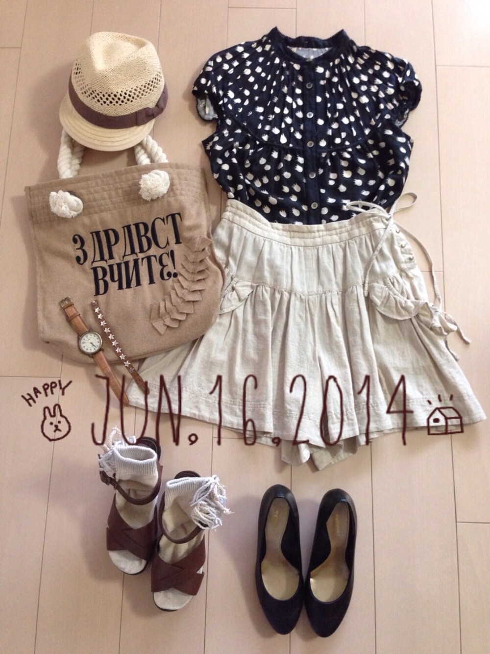 ブラウス☆ツモリチサト キュロット☆フランシュリッペ パンプス☆丸井 丸井のラクチンきれいパンプスは、ヒールが苦手な私でも楽にはけます*\(^o^)/* 砂利道も歩けました!