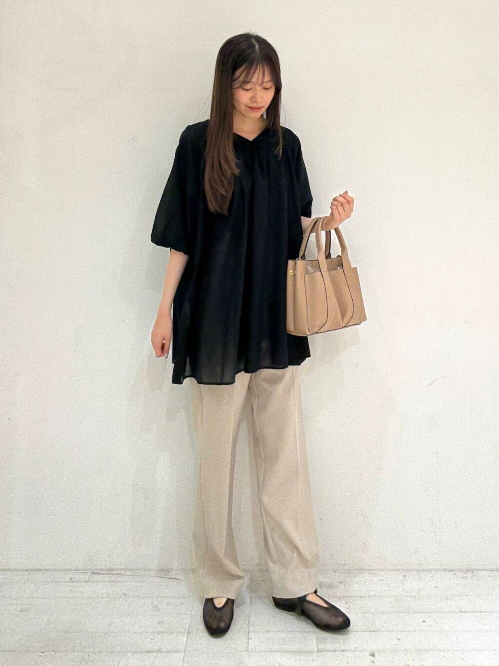 miru(DOORS 京都藤井大丸)のトートバッグ「プチダブルポケットトートバッグ」を使ったコーディネート