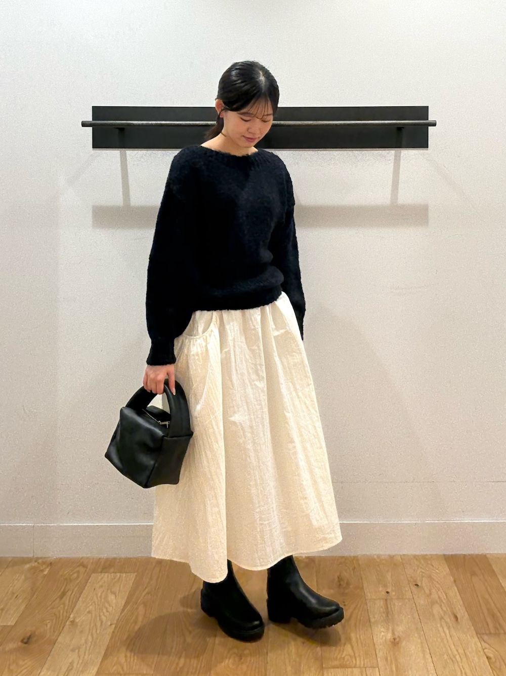 miru(DOORS 京都藤井大丸)のニット/セーター「『別注』TRICOTS JEAN MARC×DOORS boat neck loose knit」を使ったコーディネート