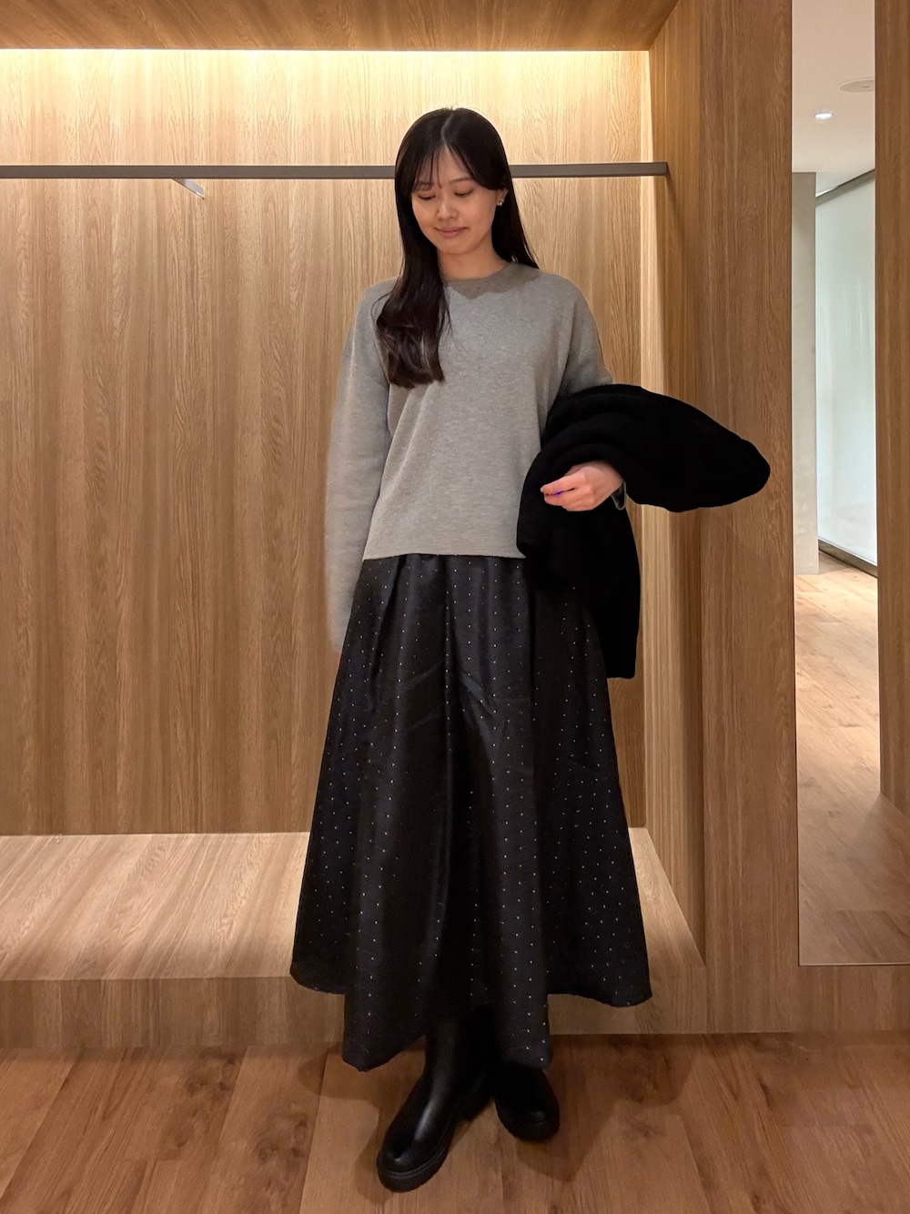 miru(DOORS 京都藤井大丸)のニット/セーター「ショート丈コンパクトニット」を使ったコーディネート