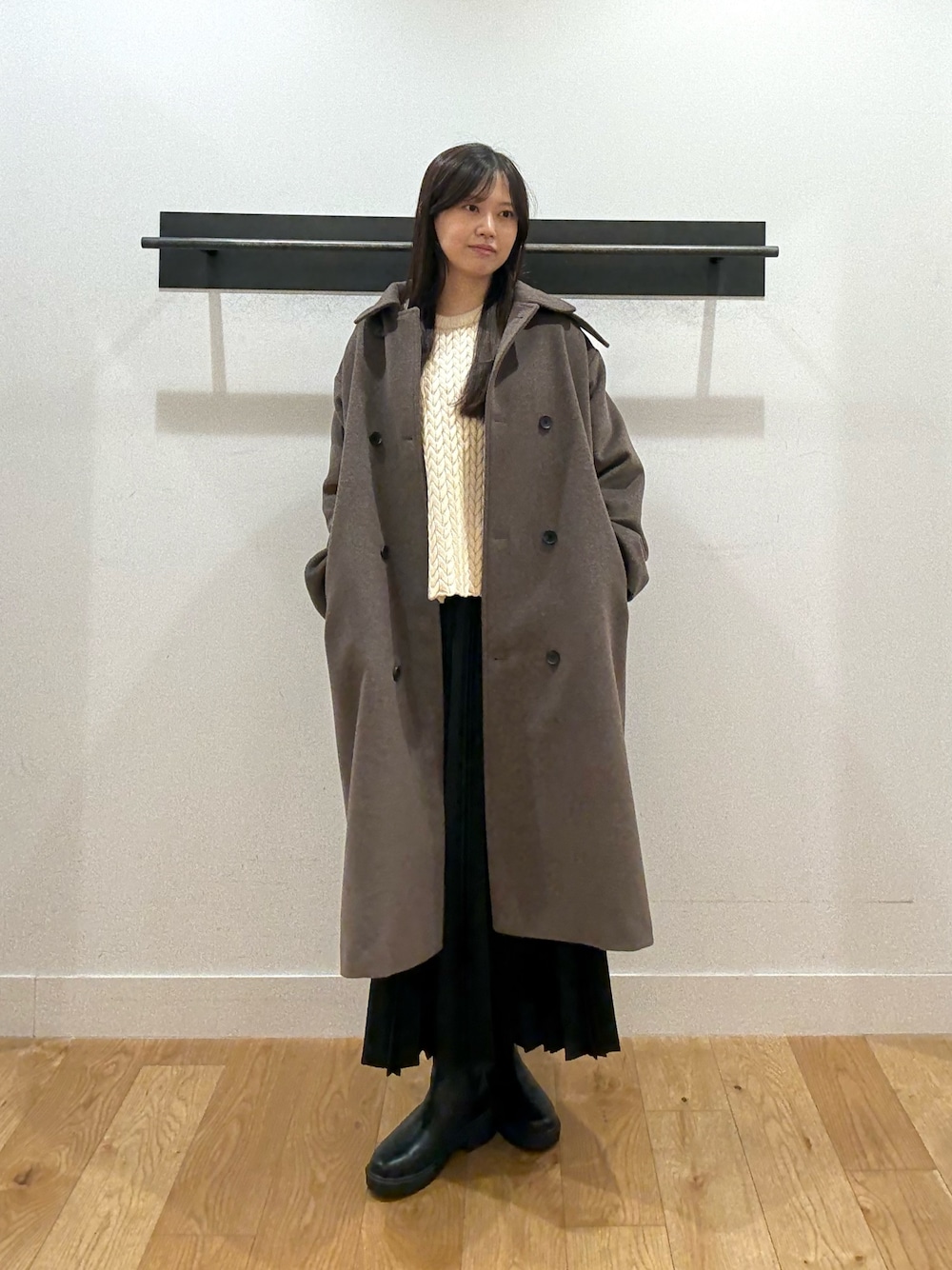 落ち着いたブラウンのロングコートとっても可愛いですよね🤎🐏 ボトムはブラックで引き締めつつ、重たく見えないシルエットバランスに✊🏻 ベーシックな色合わせでまとめることで、日常に馴染みやすく、さりげなく上品さを感じるコーディネートにしました👀