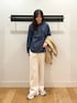 シャツはさりげないフリルデザインがポイントで、シンプルなコーデに程よい華やかさをプラスしてくれます🌼 スニーカーを合わせて、甘さとカジュアルさのバランスを取りました👀 ぜひ店頭でもご覧ください!!