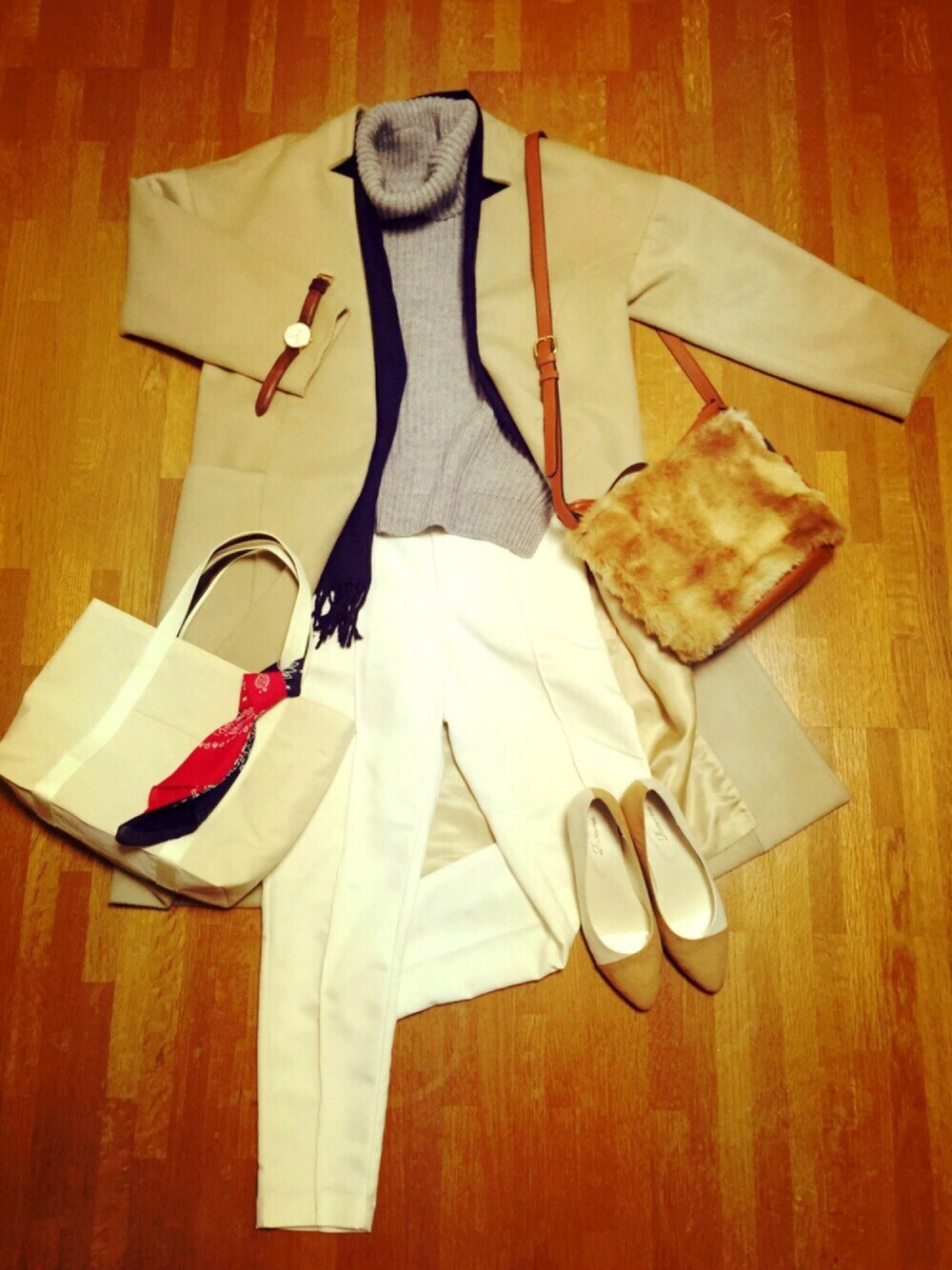 ショルダーバッグのカスタムしました。 フェイクファーで着せ替えです。 旅行やお泊り用にと、リバーシブルトートバッグが仕上がりました。キャンバス地×カモフラ柄のコンビです。 coatでコーデしました。