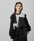フリルが動きが出で1枚でもさまになるデザインブラウスにはハイウエストのボトムスが相性がよくオススメです。全身モノトーンで着るとよりモードな印象になりますが、合わせるボトムスによって雰囲気を変えて着て頂けます。
