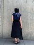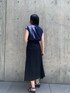 オールブラックではなく、微配色で合わして夏らしく涼しげな印象になるように意識しました。ブラウスはスキッパーで抜け感も演出できるのでこれからの季節おすすめのコーディネイトです。