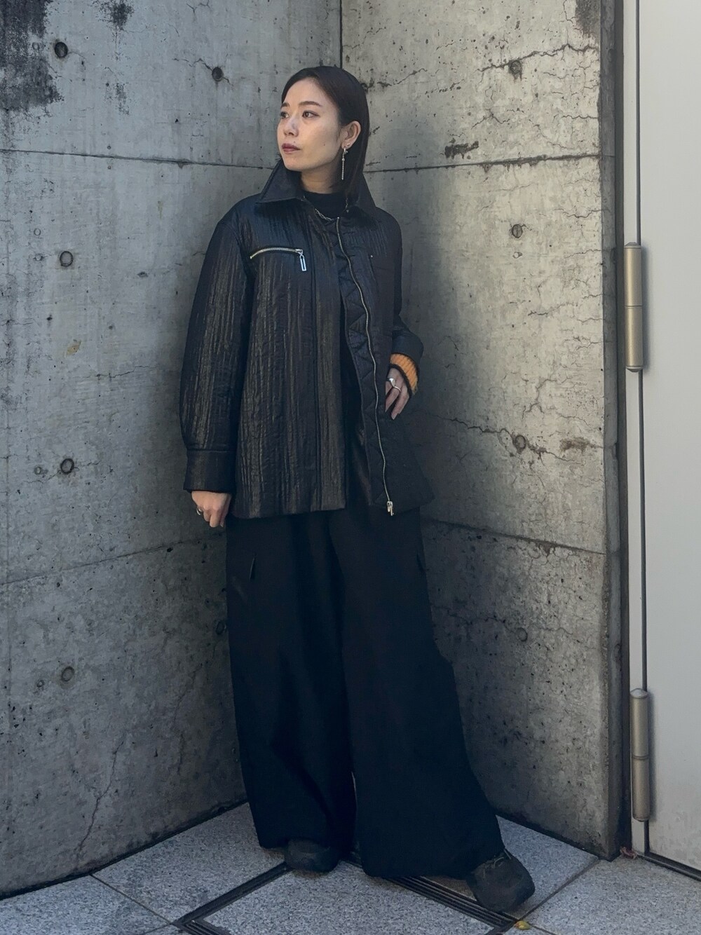 レザー見えでモードな印象に様変わりの軽量ブルゾン◎少し中綿が入っているので保温性もあって厚手のニットも中に着込むことができます!