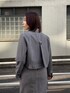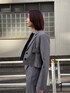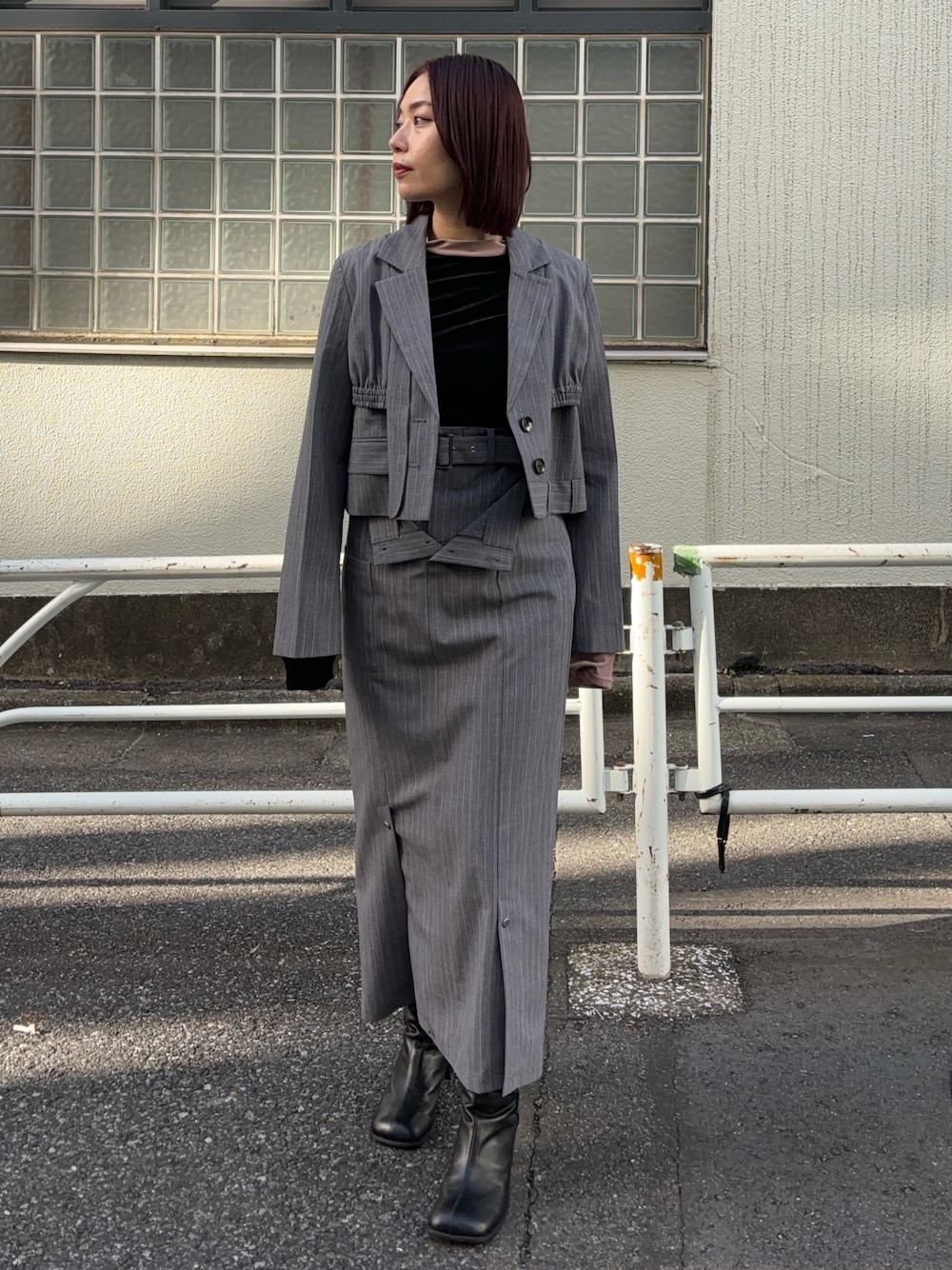 ワントーンコーデ、グレーが知的な大人な印象に◎デザイン性のあるジャケットが目をひき、ショート丈なのでスタイルアップするのがオススメです!