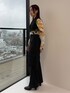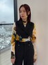 ジャンスカのベストを着回して春らしいトップスと合わせました!オールブラックでも抜け感を出すことで春でも重過ぎない印象に◯目線が上がるのでスタイルアップ効果抜群!