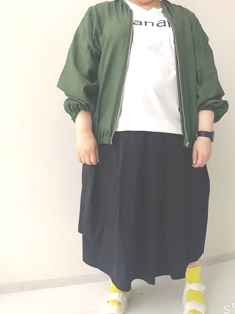 ⭐︎体型カバーコーデ⭐︎ 衿ぐりスッキリノーカラージャケットは 袖がゆったりしているので インナーのゆったりTシャツが楽に重ねられます! ウエストゴムのギャザースカートは びっくりするほど軽い♡ はっ水は梅雨時期嬉しいなー! 足が丸見えになるのははずかしい! そういう時はカラーソックスでふくらはぎからの目線回避です(๑˃̵ᴗ˂̵)و 幅広甲高な私には面テープで調整できるこのサンダルはGOOD!!( •̀ω•́ )و